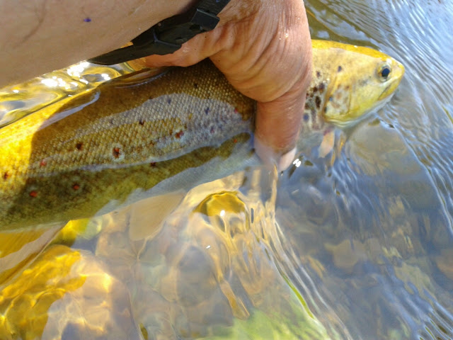 Y si las orillas no estuvieran tan enmarañadas de maleza y recobecos sumergidos, aún con ese hilo tan fino habría podido palpar alguna trucha más. A estas alturas de la temporada, la mayoría de ellas han recibido el doctorado en lo referente a la pesca con mosca, y "ca", uno no sabe muy bien a que atenerse.